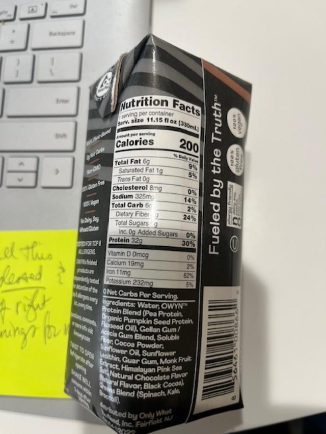 Joey AtlasHere is the pic of the OWYN Pro Elite Plant protein shake ingredient list.